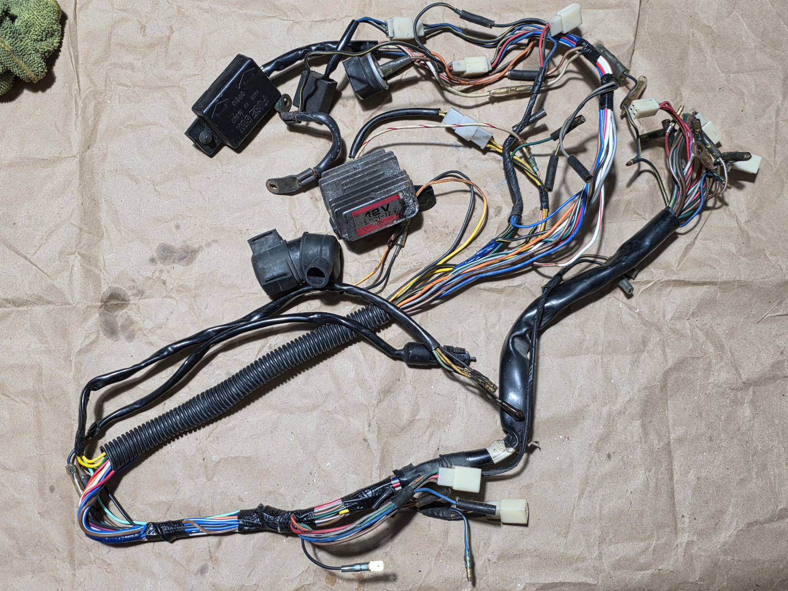 Cleaning up the wiring. It isn't done but it's getting there. Good condition overall so it doesn't need much. Still need to finish the charging system and I'm adding a relay for the ignition coil. Then it's getting a test fit before I wrap it in some good quality black electrical tape. I want to hide the electrical system so it's as clean as possible but I'm not spending 20 hours building one from scratch.