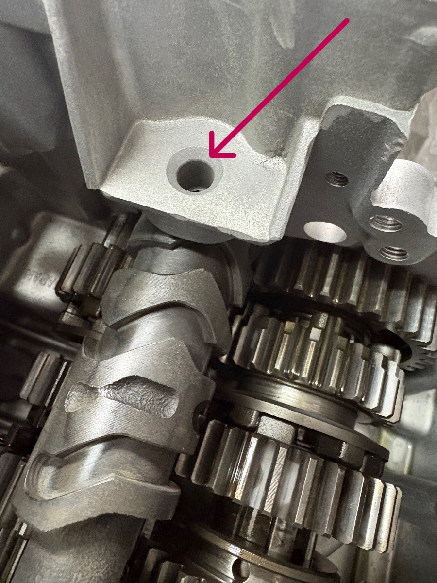 Wonder if it's there to allow oil to drip on to the shift drum - not sure whether that would be necessary, though