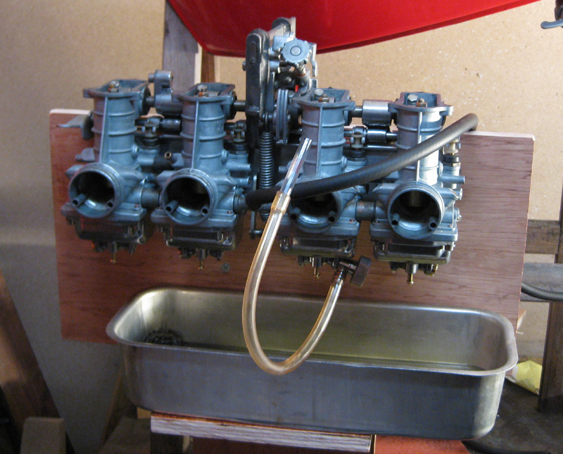 Btw, I found that it's nice to have a drip pan under the carbs, I used an old bread form.