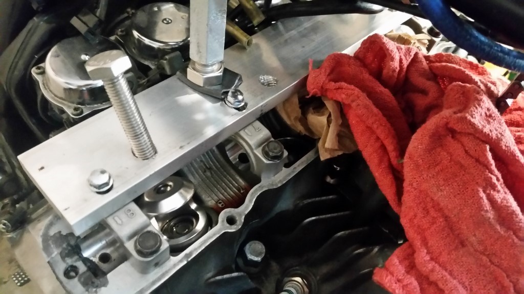 The extension nut and bolt you see wedging the plate to frame was only to divert stress on to the frame, from the bearing caps. It was probably unnecessary but I tend to be paranoid.