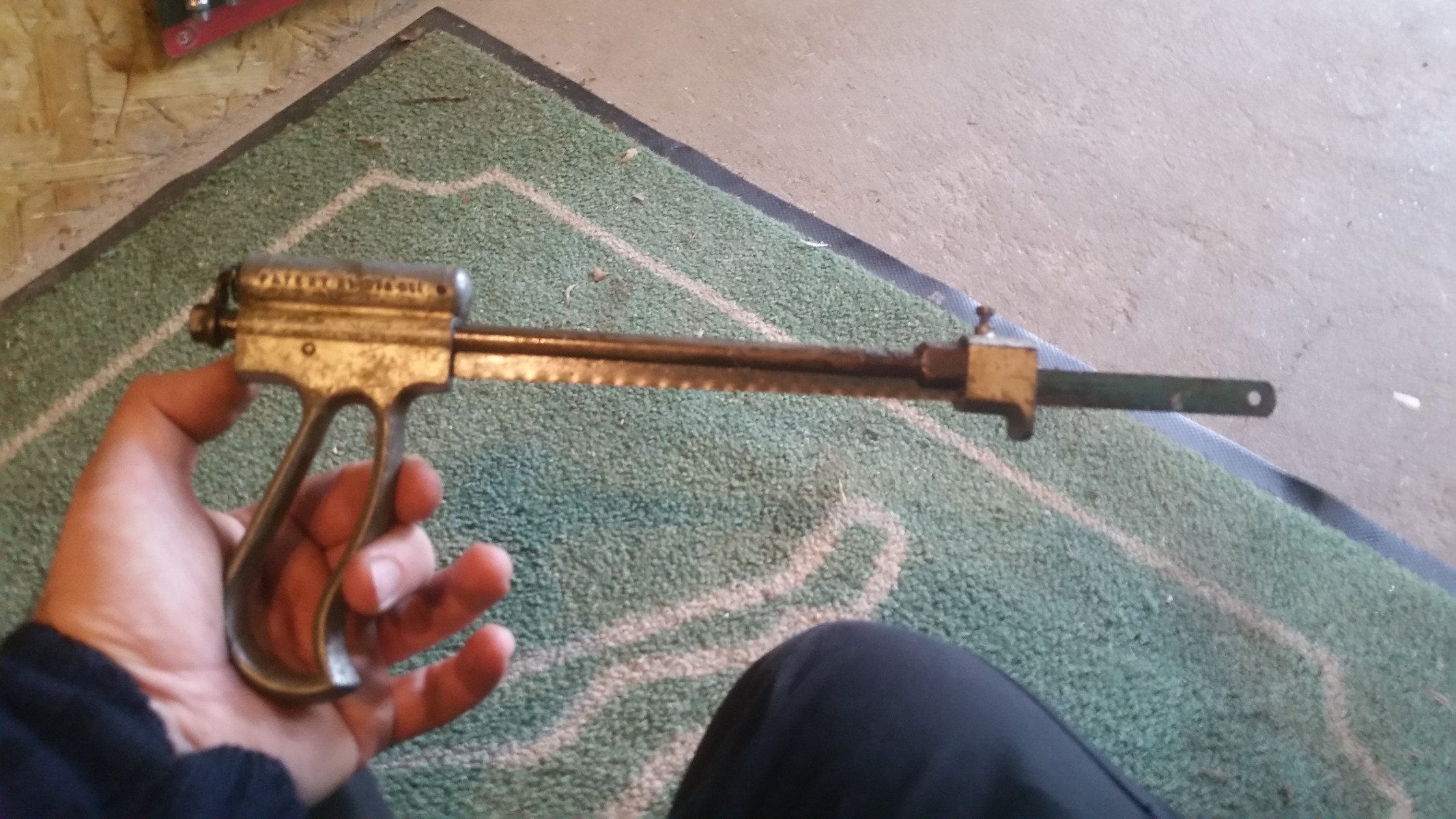 I've just taken some more pics of interesting tools I own! Next up is this spring loaded gun type hacksaw! My guess is you start with a small hole or slit in a wall or piece of metal then saw your way down pushing it in and out on the spring??