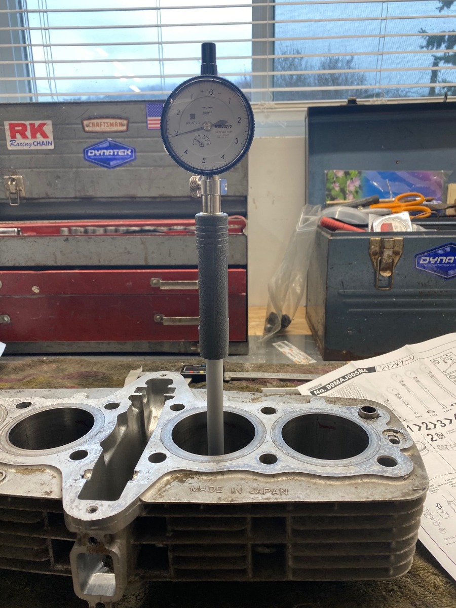 Interestingly, when doing this on my KZ750 I found the bore over nominal, even when measuring in locations in the bore where the piston doesn't travel (such as at the very top.) WTF? I still don't understand that other than to blame Kawasaki about not caring.