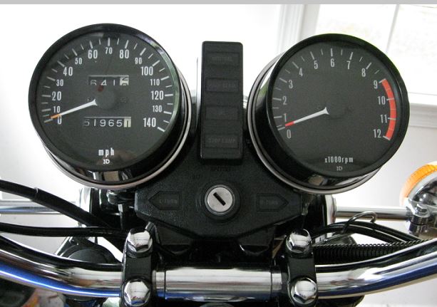 Exactly! A 160 mph speedometer on a KZ650; and a 9500 rpm redline? I don't think so. So then what might the real mileage be since the gauges are from a different bike??? Ed