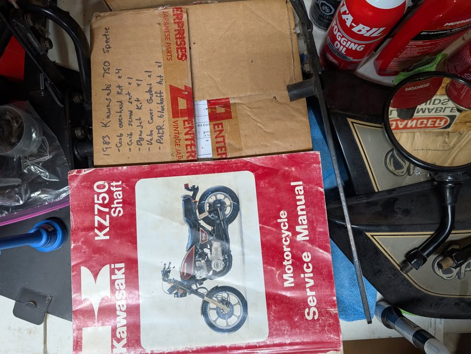 Sadly the carburetors need overhaulling, a jet kit and screw kit are included. She fires right up and runs halfway decently, but does sputter a bit under load. The more I've been running it the better it gets. Also one of the carburetors drips a little from the overflow, so the float may be out of adjustment or the needle not seating right.