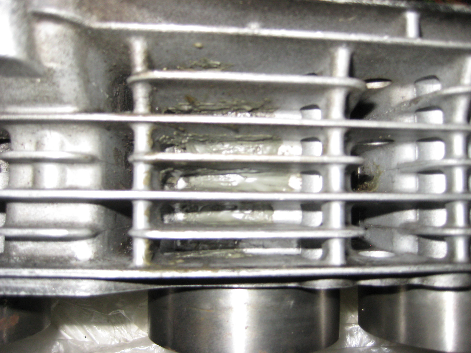 That's not only a smoking deal but on fire. I sent a gorilla block 1428cc to Eric at Hooper in Florida and spent over 1400.00 to duplicate the liners. Too bad Injected You live in Canada, politics has separated us as a former union of enthusiasts when it comes to freely swapping crap amongst ourselves. Too bad they used an early cylinder, could of given them a later one, less valuable. What's the JB Weld all about? Did they break thru the casting when boring? I see the front tensioner shaft saddle is goofy, like something let loose. This should be easily repaired though.