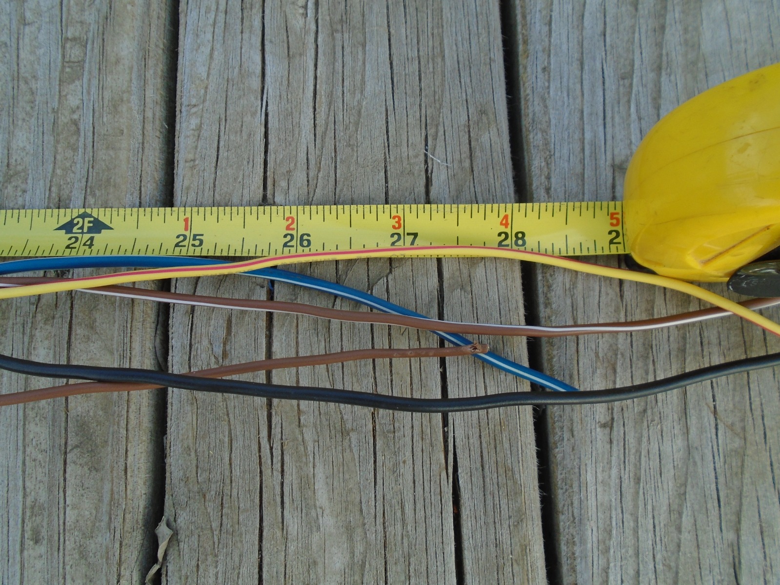Don't have Your stuff sitting next to me. If i was a betting fella you should have about 28" from switchblock to end of 4mm terminals. I'm gauging this from several examples at hand. Of course longer is the best choice, ya can "burn" the extra length up underneath tank.