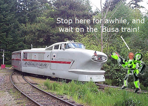 Attention ladies and gentleman this is your conductor on the Kaw and NorthWestern Railroad speaking:We will be pulling over on a siding to let a high balling load of Suzuki Hyabusas pass us,The good news is we may be able to tuck in behind them to boost our fuel mileage on our trip! :woohoo: