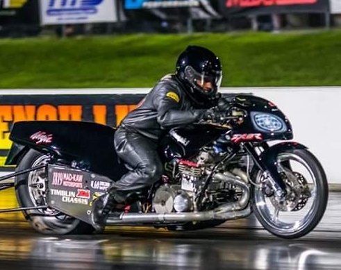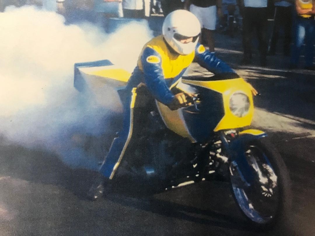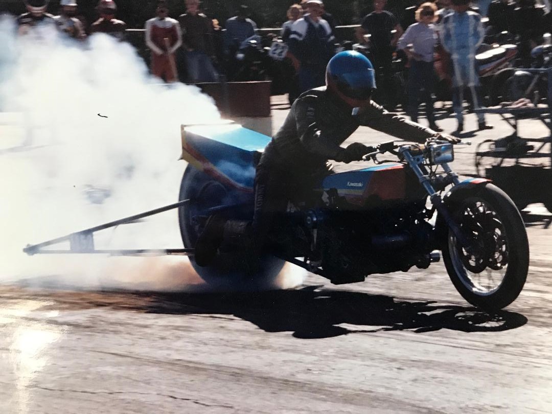 In a former life - KZ-based dragbike - CrMo car tire chassis, 1395cc, Hahn Racecraft turbo system, VP C16, Orient Express 3-spd auto, 7.80's @ 165-170.