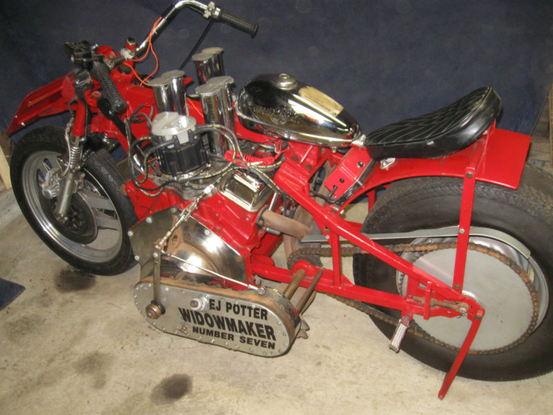 Potter made a world record pass in 1973 running 8.68 @ 172 MPH, setting the quickest and fastest time in the quarter mile on two wheels. That was version #7 which had a 350 cu in engine with the Hilborn Injectors (suspect that was on Nitro)