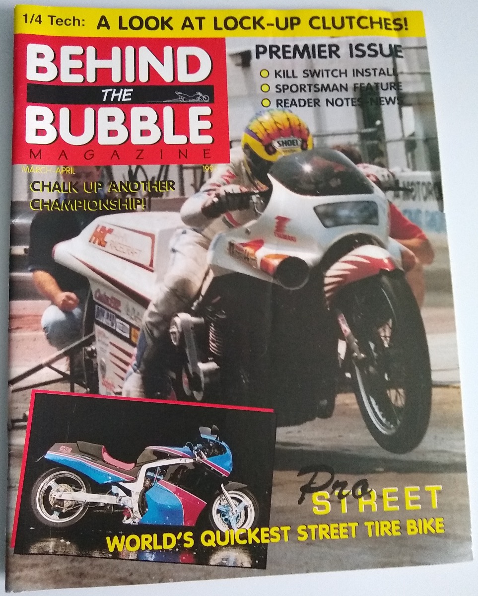 On the cover is the Hahn turbo Kaw funnybike. The inside cover says that it's Neal "Fast" Lane in the saddle, but I say that it's Billy Vose. Both were hired guns, back in the day, and could ride pretty much anything.