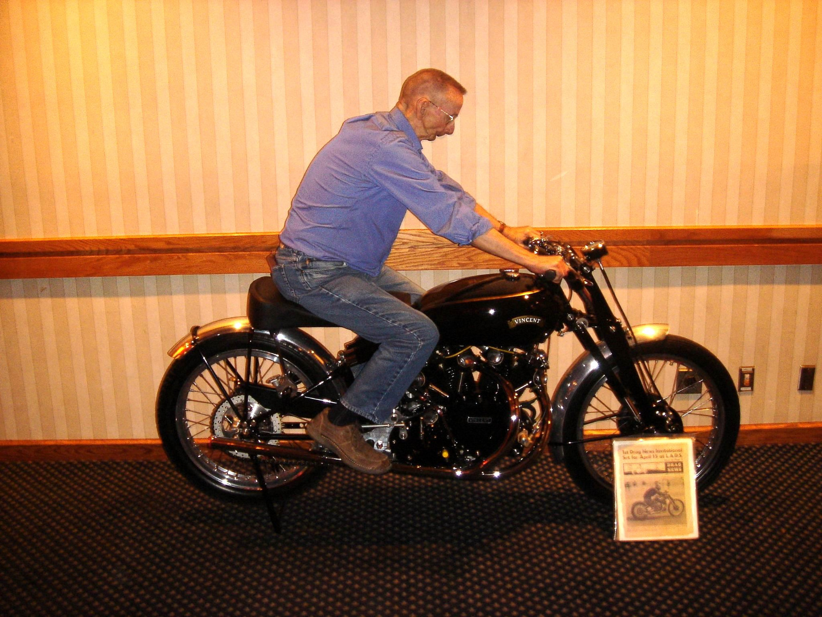 24 Apr 2024 13:17A beautiful restoration job, Vinsky. Thanks for sharing those pics. Some real history there!It took a few years to gather enough parts to restore the bike. in 2006 at the NHRA banquet the rider Tommy Auger was honored with the Golden Age Award. He was unaware his old drag bike was on the stage behind a curtain and was stunned to turn around and see it again after 50 years.
