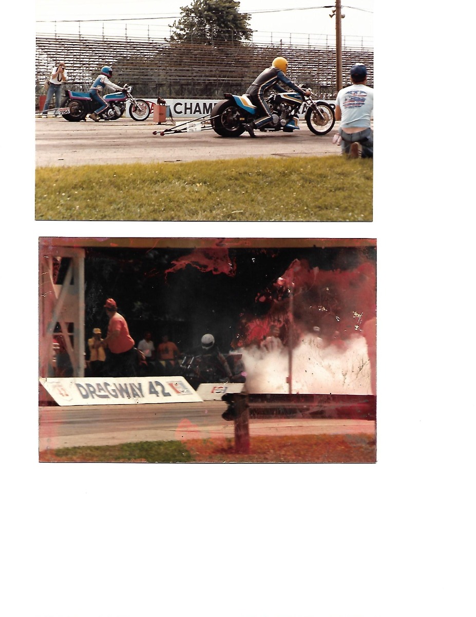 In a former life - KZ-based dragbike - CrMo car tire chassis, 1395cc, Hahn Racecraft turbo system, VP C16, Orient Express 3-spd auto, 7.80's @ 165-170.