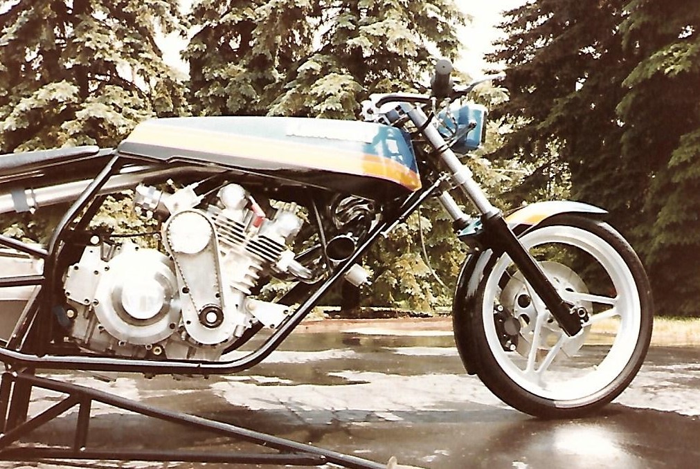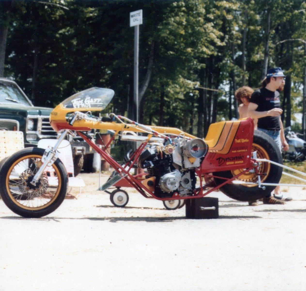 In a former life - KZ-based dragbike - CrMo car tire chassis, 1395cc, Hahn Racecraft turbo system, VP C16, Orient Express 3-spd auto, 7.80's @ 165-170.