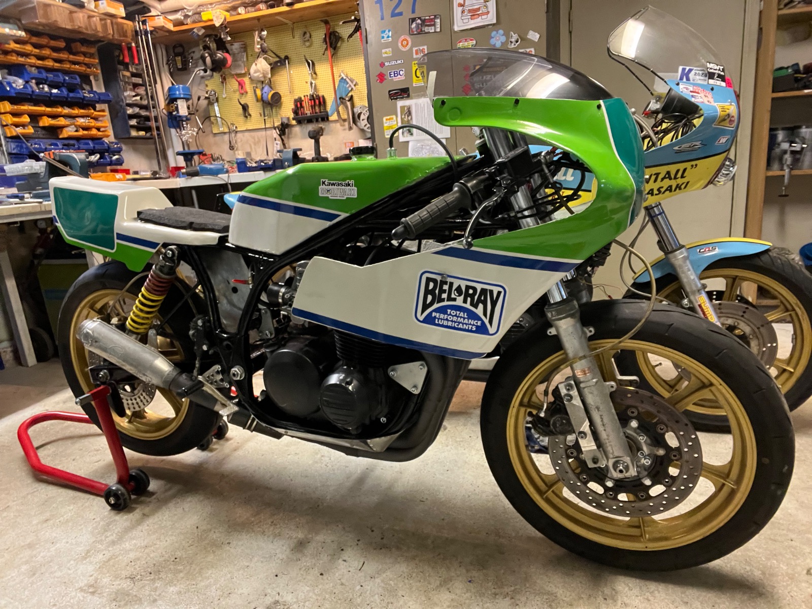 I sold the green 650 and I want to have at least one green bike so I painted it green instead of the Yellow/blue Moriwaki colors.