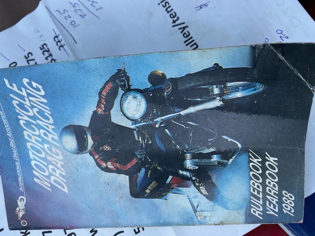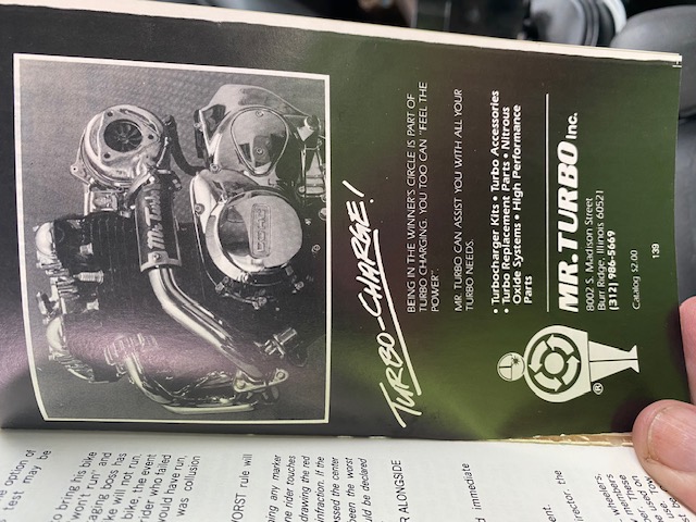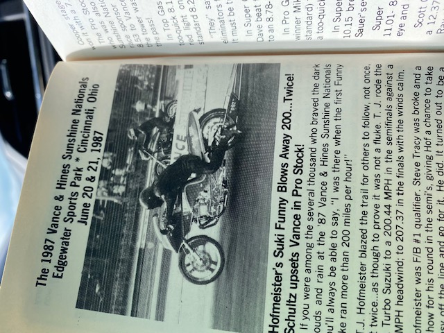 I found a Motorcycle Drag Racing Yearbook on one of my "most excellent adventures" dated 1988. Found some pictures (He's on cover too) of my High School buddy T.J. Hofmeister who is the son of Ted Hofmeister the original founder of MR. Turbo.
