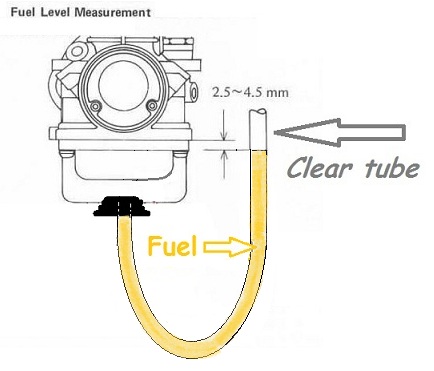 Does anyone know where to get (or how to make) a fuel level gauge tool for these RS34 carbs, so I can do the clear tube test? The drain plug is single purpose and it is very large--takes a 17mm wrench.