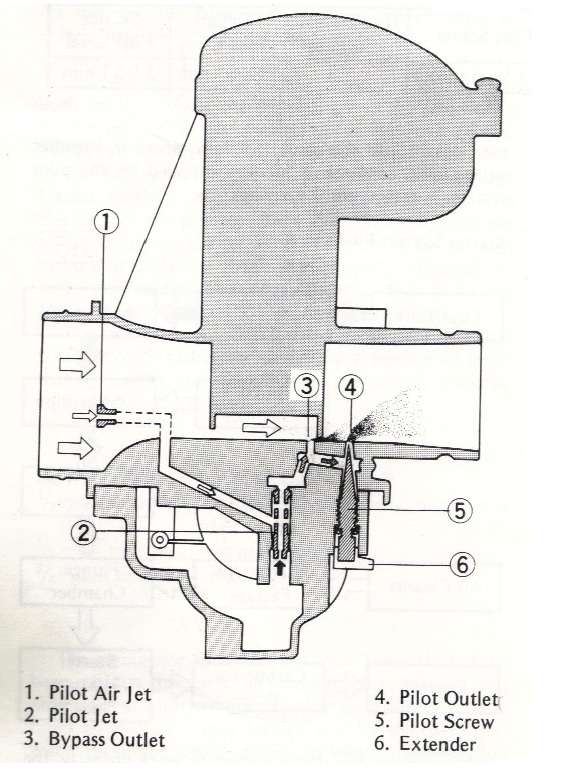 May adapt the following pilot circuit cleaning method (illustrated with side-located pilot screw) to use on carb with bottom-located pilot mixture screw: