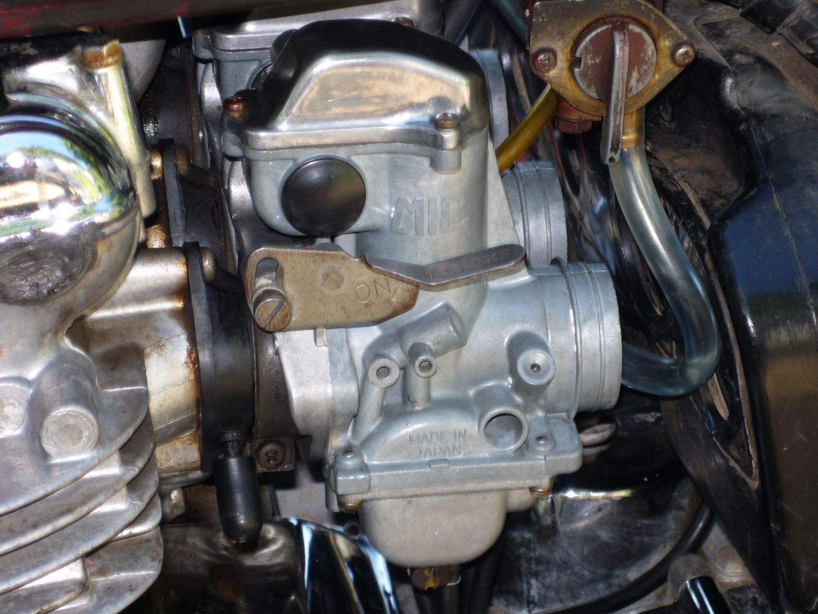 I still need to install the airbox hoses which are never much fun but even with the open carbs the bike is running pretty well. I did have a minor issue with the kill switch but I got that sorted out. I rode it a couple of miles and down to the gas station and back. I would have done more but I got called into work a couple of hours early.