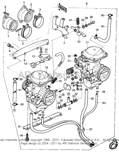OK then #15 is the spring for the throttle adjustment, with the cable adjustment mechanism, #13, having the threaded end and the threads in the left carb body being in question. Are the threads all right, will it adjust but not hold? Maybe this spring is shot, #15.