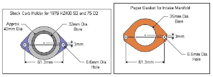 Holes in a carb holder must match mounting studs on the engine head (center-to-center distance between studs should equal center-to-center distance between holes in carb holder).