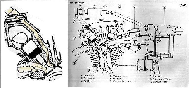 Hey Guys I've seen everything now, I thought that I had been over every inch of this bike,come to find out I guess I haven't, check out this contraption that the previous owner did!2 pieces of 5/8 hose to a 3/8 tee with 3/8 fuel line going into the 5/8 hoses and a small filter pod. I replaced the hose with 1 piece of 5/8 heater hose and ALL the decel pop has went away.If any of you guys are @ the Vintage Japanese show in Jefferson PA in August I'll buy ya lunch!Thanks again