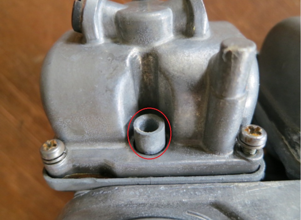 The stock KZ900-B1 LTD Mikumi 26mm manual slide carbs, viewed from the bottom, have the protruding part circled in the following picture. But with the protruding part being more "surrounded" than shown in the picture: