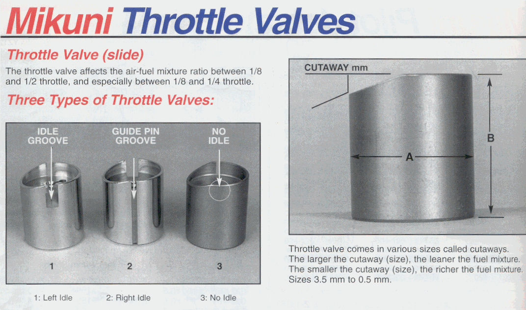 Throttle slides among various carb designs have different cutaway sections on the air intake side of the slide.
