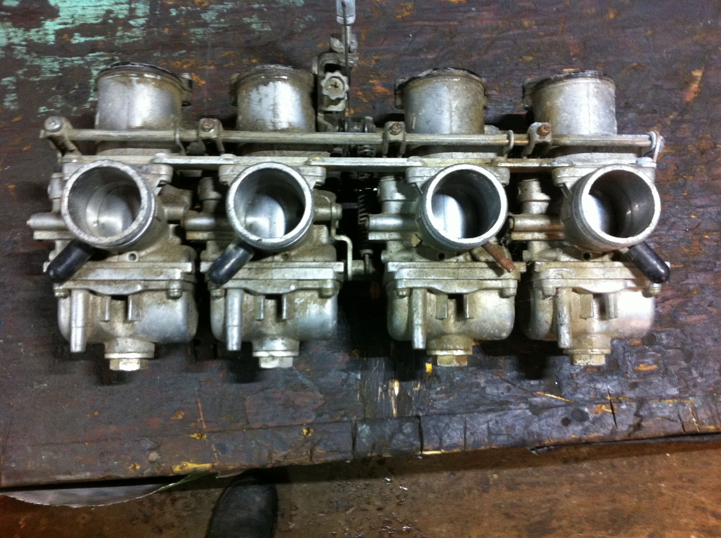 They've clearly been modified for vacuum ports by somebody, which among a couple other things suggested to me that they were maybe the VM33s, which as per earlier did not come with synching ports. I did check the bore diameter quickly at the fellows house, and I seem to remember it being a touch OVER 33mm, but not an awful lot. I currently have then soaking in some hot soapy water to clean them up at least a little before moving on.