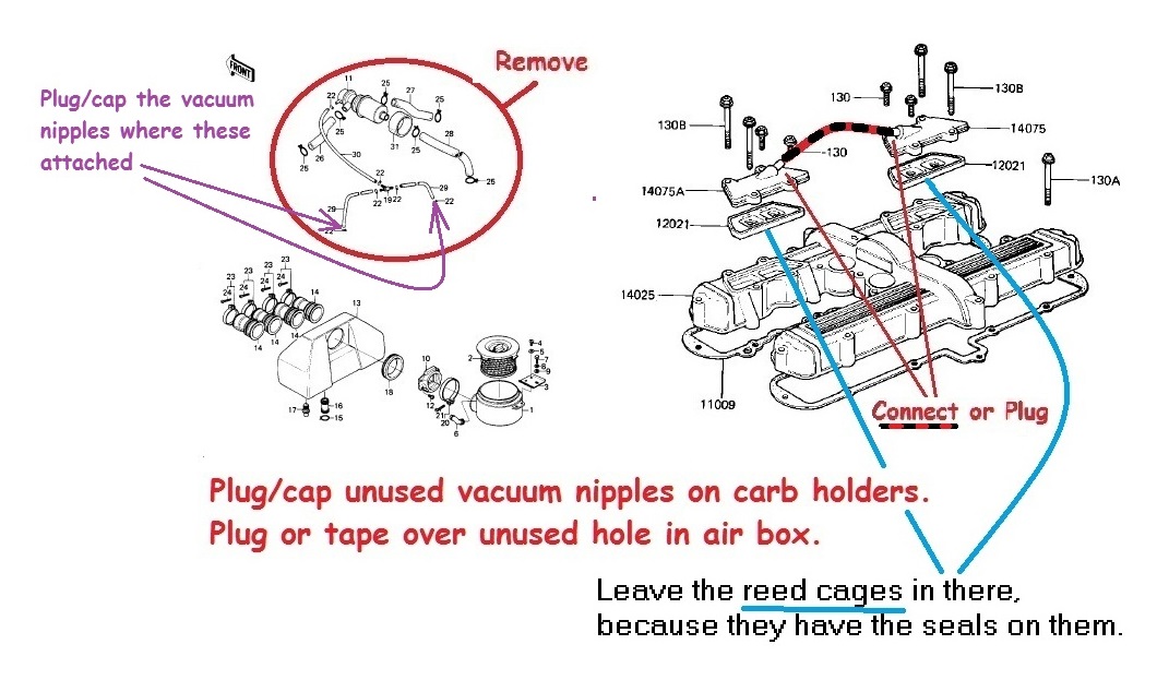 Be sure not to confuse a vent nipple with a vacuum nipple, as the carbs' vent nipples are supposed to exit to open air.