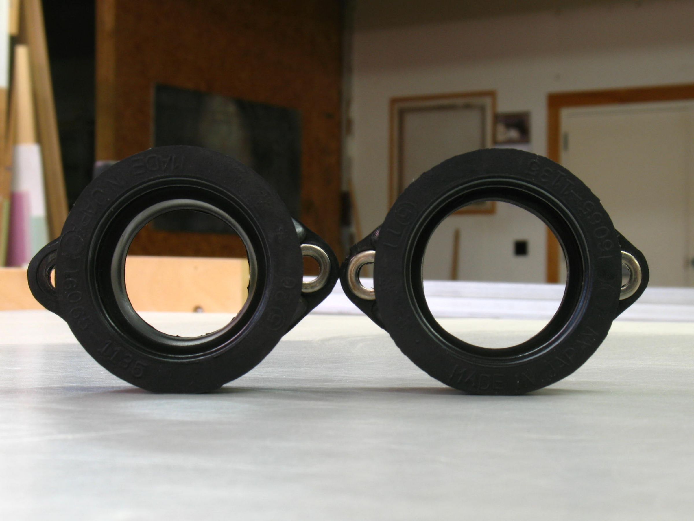 With the removed carb manifold upside down on the flat table surface, its easy to sand off the rubber right up to the visible impression created by the edge that the intake runner formed in the rubber surface. A must to reattach the manifold in the same carb location it was removed from, for a good re-seal. The resulting inside rubber surface is smooth and flat