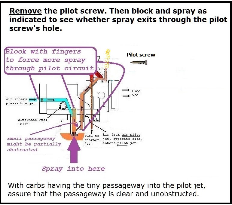 No. I know how to clean the fuel bowl. I'm talking about the passage from the bottom of that tube to the pilot screw. In Patton's pic it is the Fuel to Starter Jet that goes up to the pilot screw.