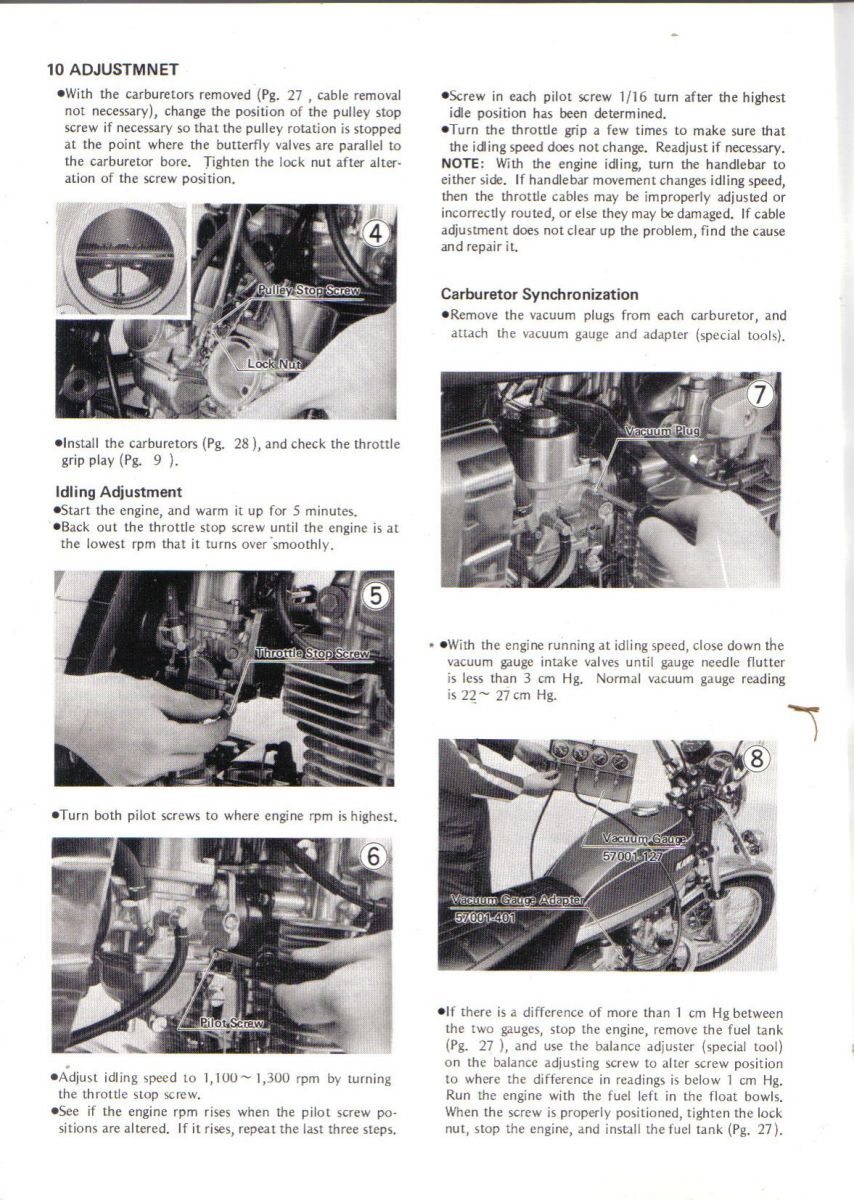 Hello guys, SO I got my 74 KZ400 to run. and its running great, thanks to you guys. So I have a 4 gauge carb sync tool. I was wondering where do I connect the tubes into my Mikuni VM30? I am having trouble with it and maybe some of you guys can help me out