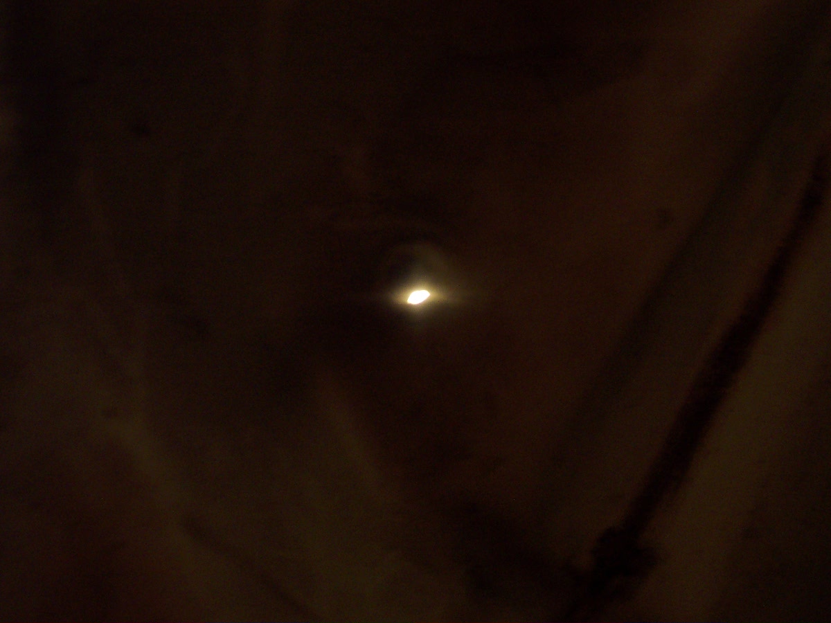 This is poor photo . this is bottom of tank looking up through the hole into light. As you can barley see it just goes through the tank