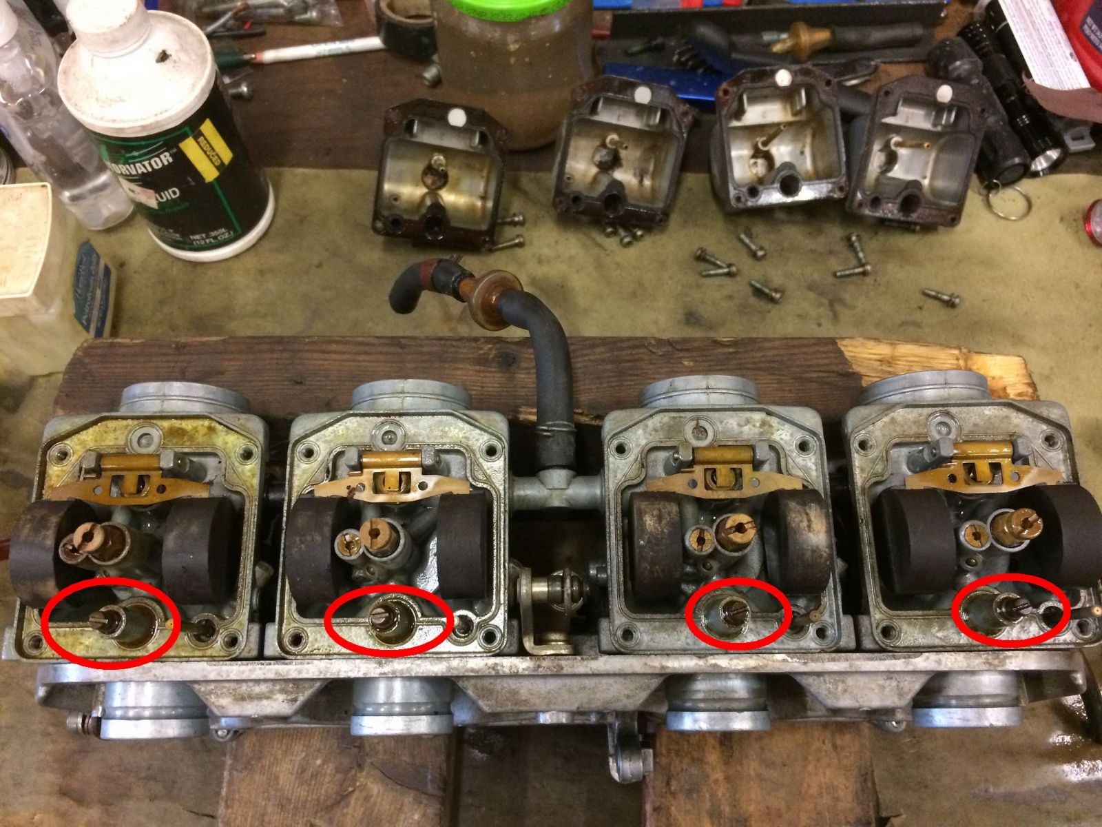 04 May 2018 15:43He's refering to the screws in his pic by the carb thoat. We need to sèe which carbs you have to ascertain what is or isnt missing.Mikeyrozell wrote: Pilot jets are there but they go down in the tube and where are the mixture screws