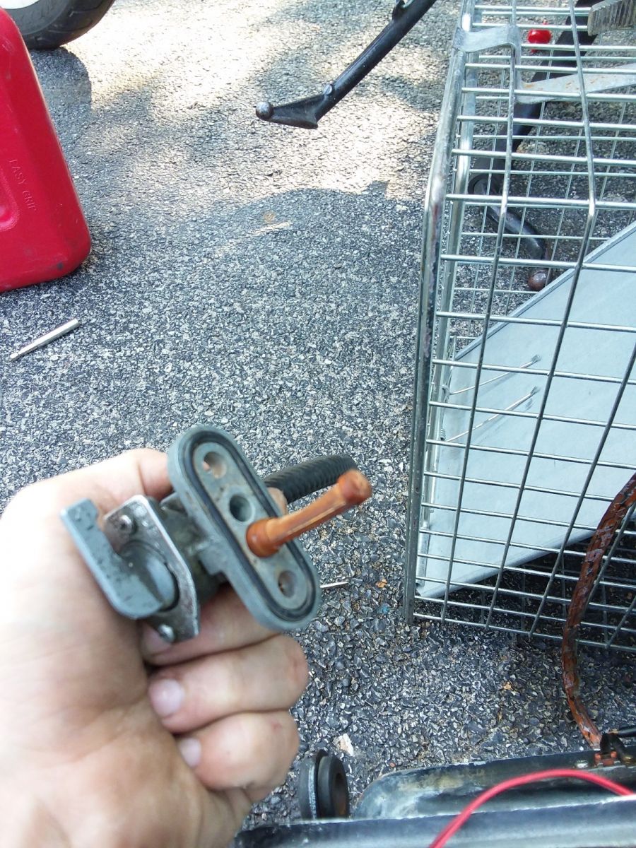 I will look around to see if any buddy's have a m/c laying around. For the leaking, I noticed that after sitting for a while Itll run rough until I sit on it and hold it upright. Not too bad but still noticable. Is it just the fuel being on one side of the carb bowls? A friend suggested maybe i could keep everything petcock wise just put in an inline shut off is this recommended? I looked around inside my tank and found this plastic filter was tucked in a corner eventually with shaking the tank I got it out is this what was missing?