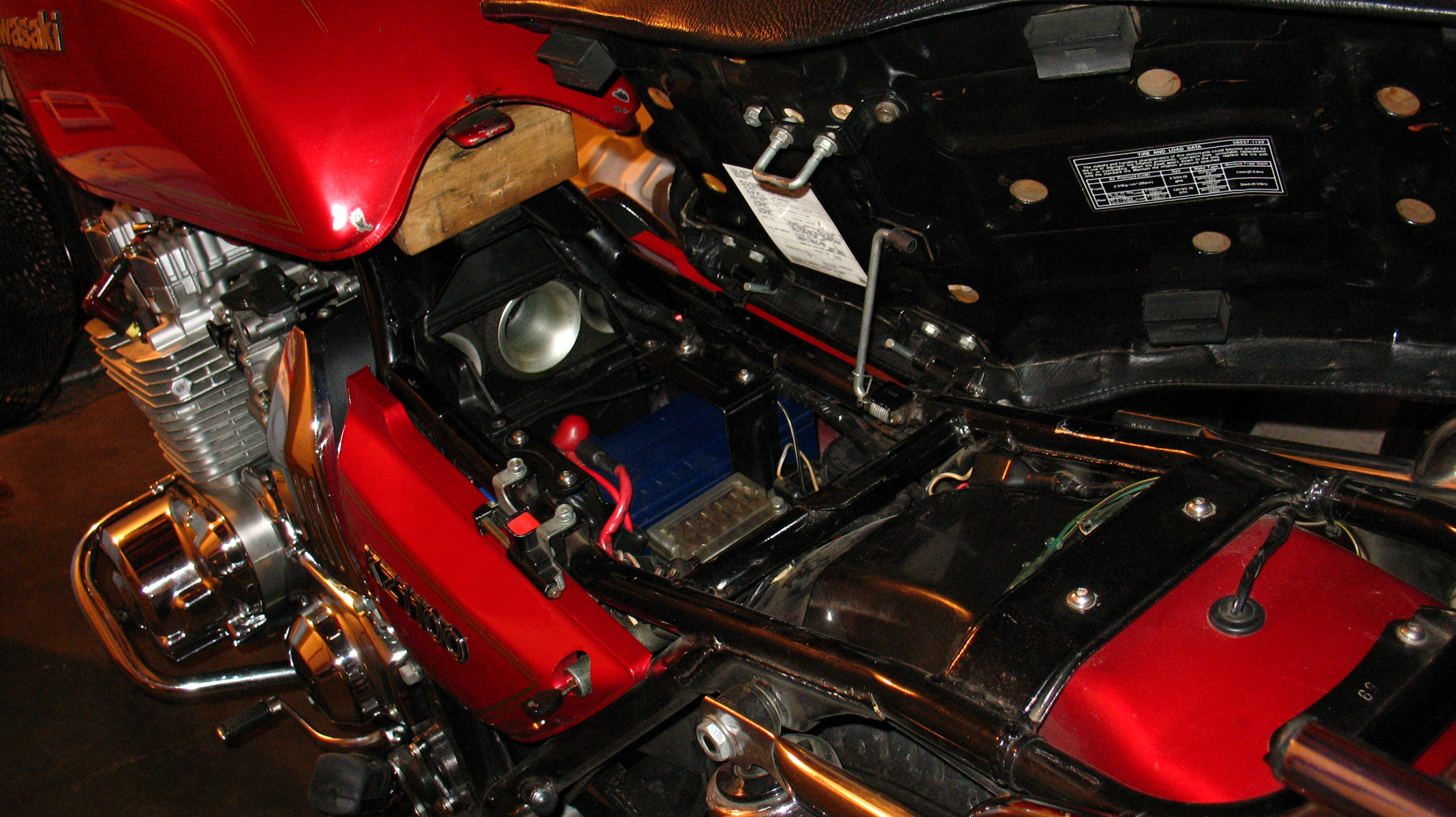 Perhaps the open interior might accommodate a variable-speed blower regulated by current pulses from the coils or ignition system to control the rpms and maintain constant positive air pressure to the carbs. Probably not a practical concept, but the thought seems simple enough.