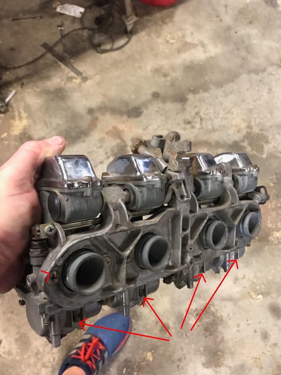 My guess is VM26SS carbs. They were used in 1976, 1977 and part of 1978 on KZ900's and KZ1000's. If they have fuel/air screws (can't tell for sure from the photos) they are from 1976. If they have pilot adjusters (looks like they do) they are 1977 or 1978. In my view these were the best carbs used between 1973 and 1980. They don't have the complicated synch mechanism of the Z1's and they don't have the accelerator pump of the later years. Very easy to rebuild and very responsive across the power band. I have a set from 1976 on my B4.