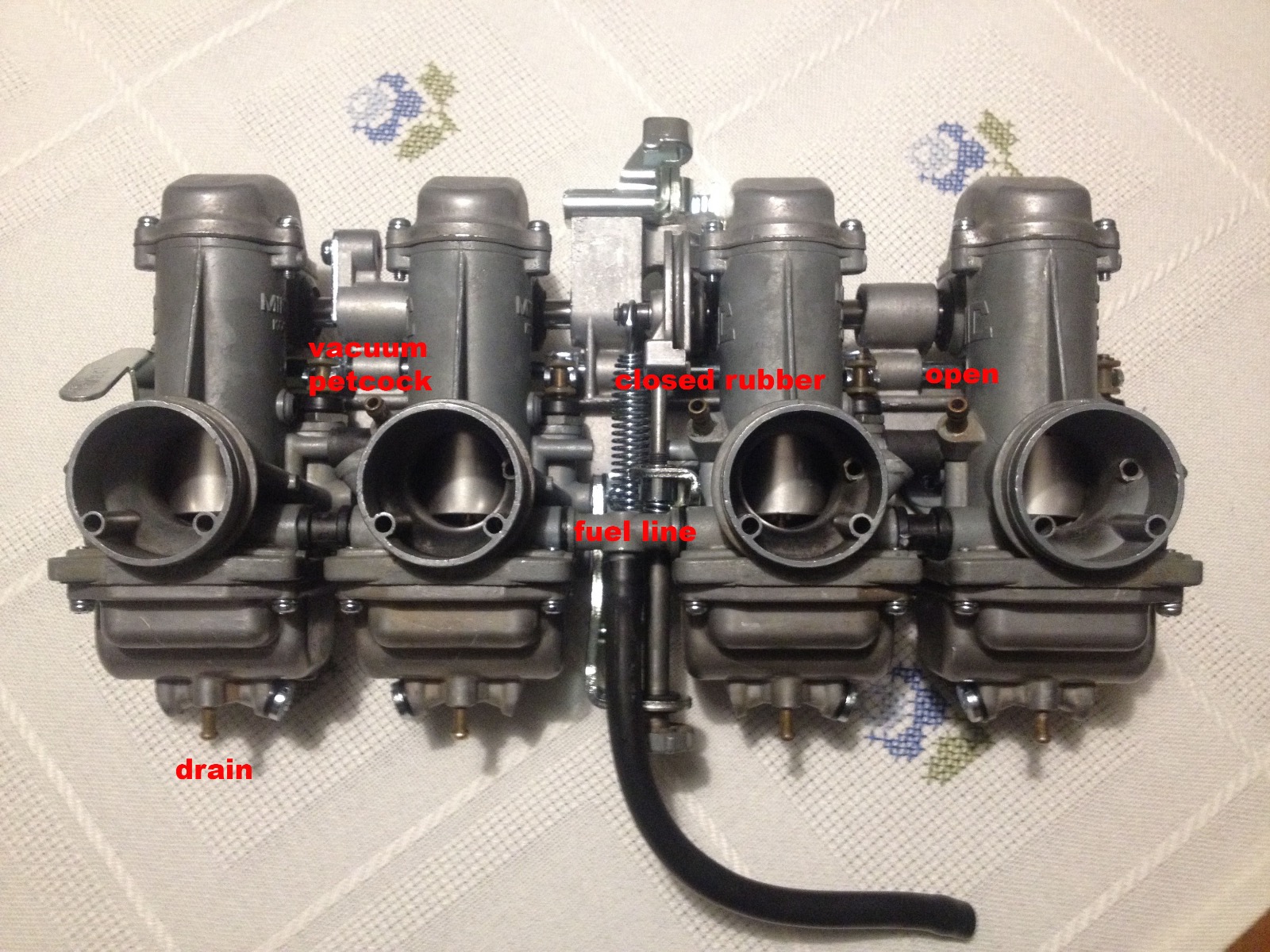 The remaining two carb spigots are probably for vent hoses exiting to open air.