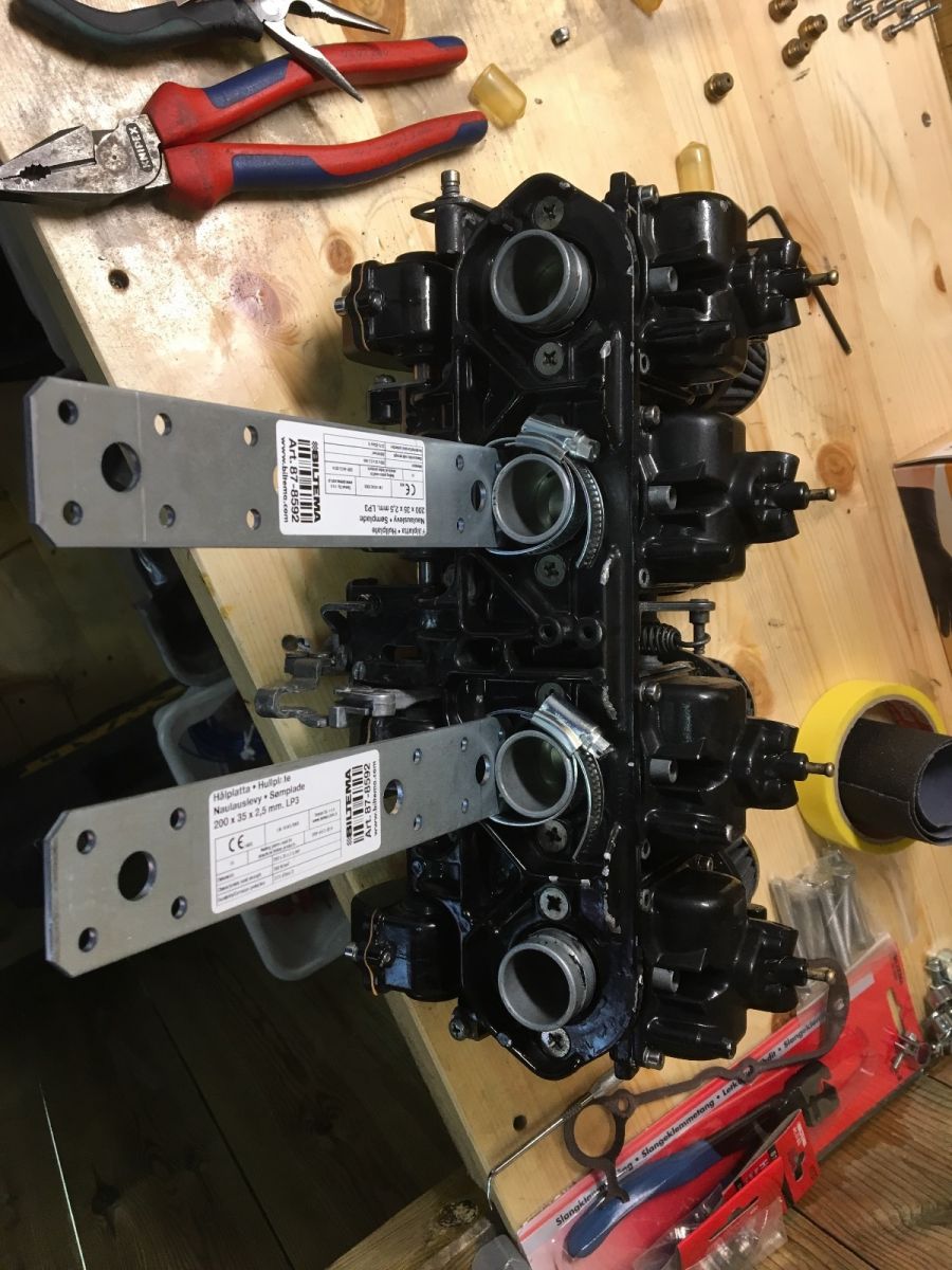 I made some bracket so I could adjust and measure many times without installing the carbs each time.