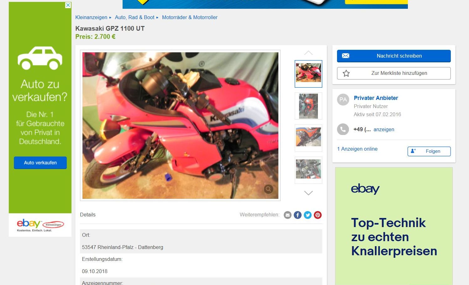 I missed a first owner GPZ 1100 UT in pristine condition with less than 10000 miles for 2700 Euro (3000 Dollar) on ebay.