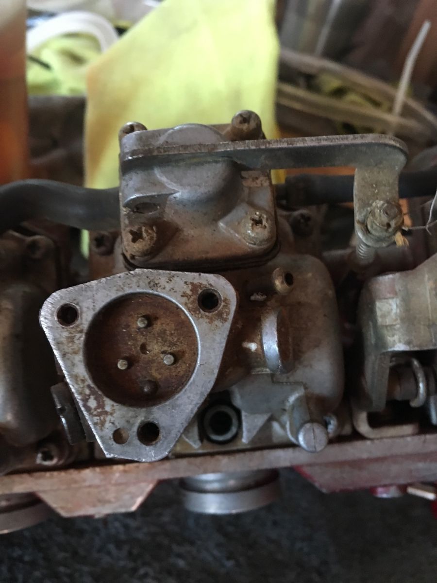Wow! Those carbs look like a nightmare. Please don't install them as is and expect them to run. They need a complete rebuild including unganging. Personally, I'd strip off the red paint straight away. They have provision for an accelerator pump too so you need to sort out that business (either get it working or disable it.)