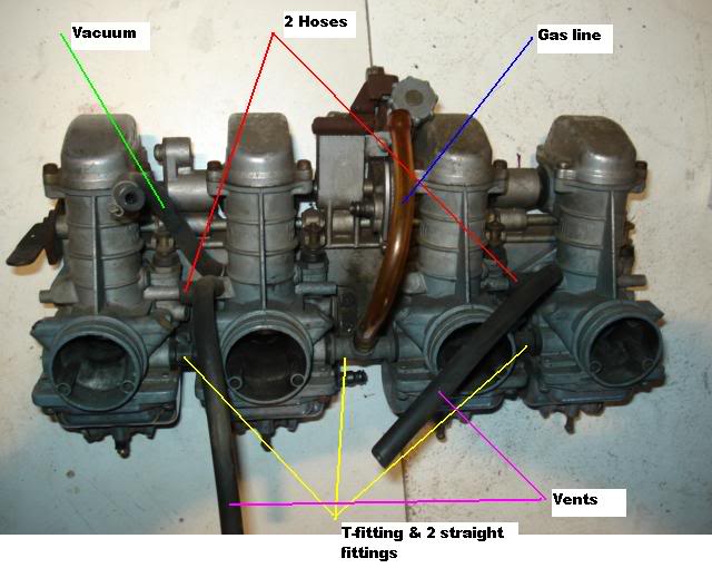 Hey guys, I've read a few posts within threads covering this but I think I have a unique case. I know that the 77 model only came with manual petcocks, and 78+ had vacuum. But, my carbs have vacuum fittings on carb 2 and I think carb 4. If the vacuum fittings are there , does that always mean vacuum is available or is it possible that they aren't drilled through? And, if they are real vacuum fittings, I should be capping these off right? Previous owner just had hoses sticking out of em but not capped.