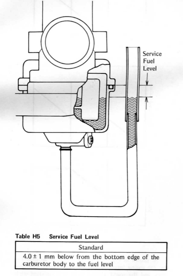 Can you post a photo of manual section in question? The early KZ750's used very similar carbs and the fuel level is lower.