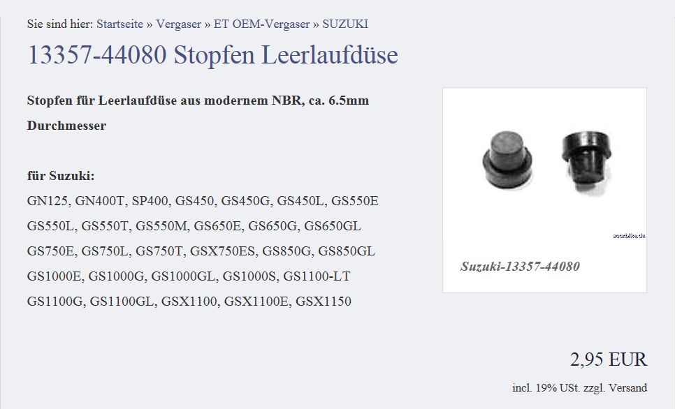 Partzilla >> Suzuki 13357- 44080