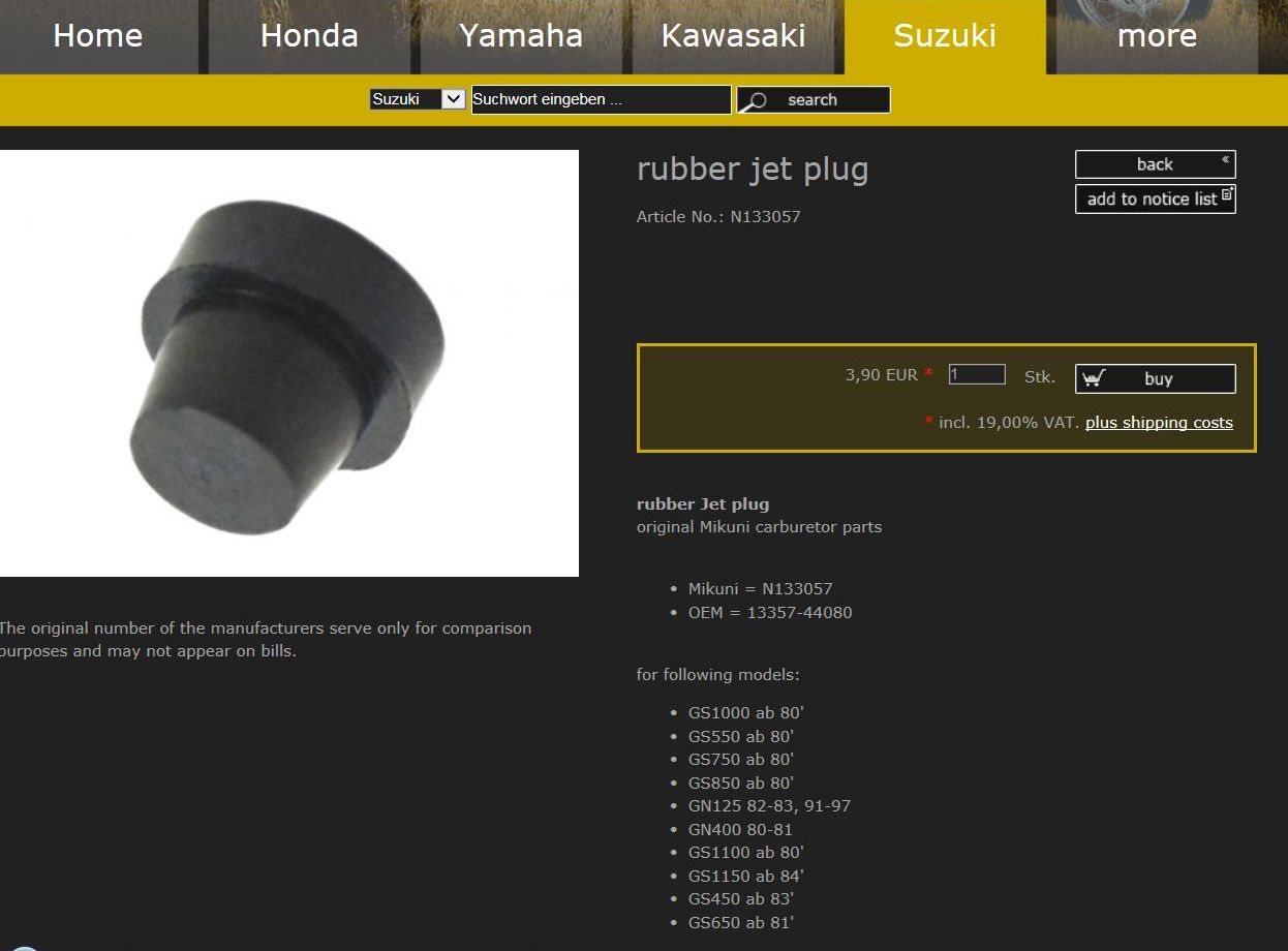 In the USA the Suzuki dealer probably has them.