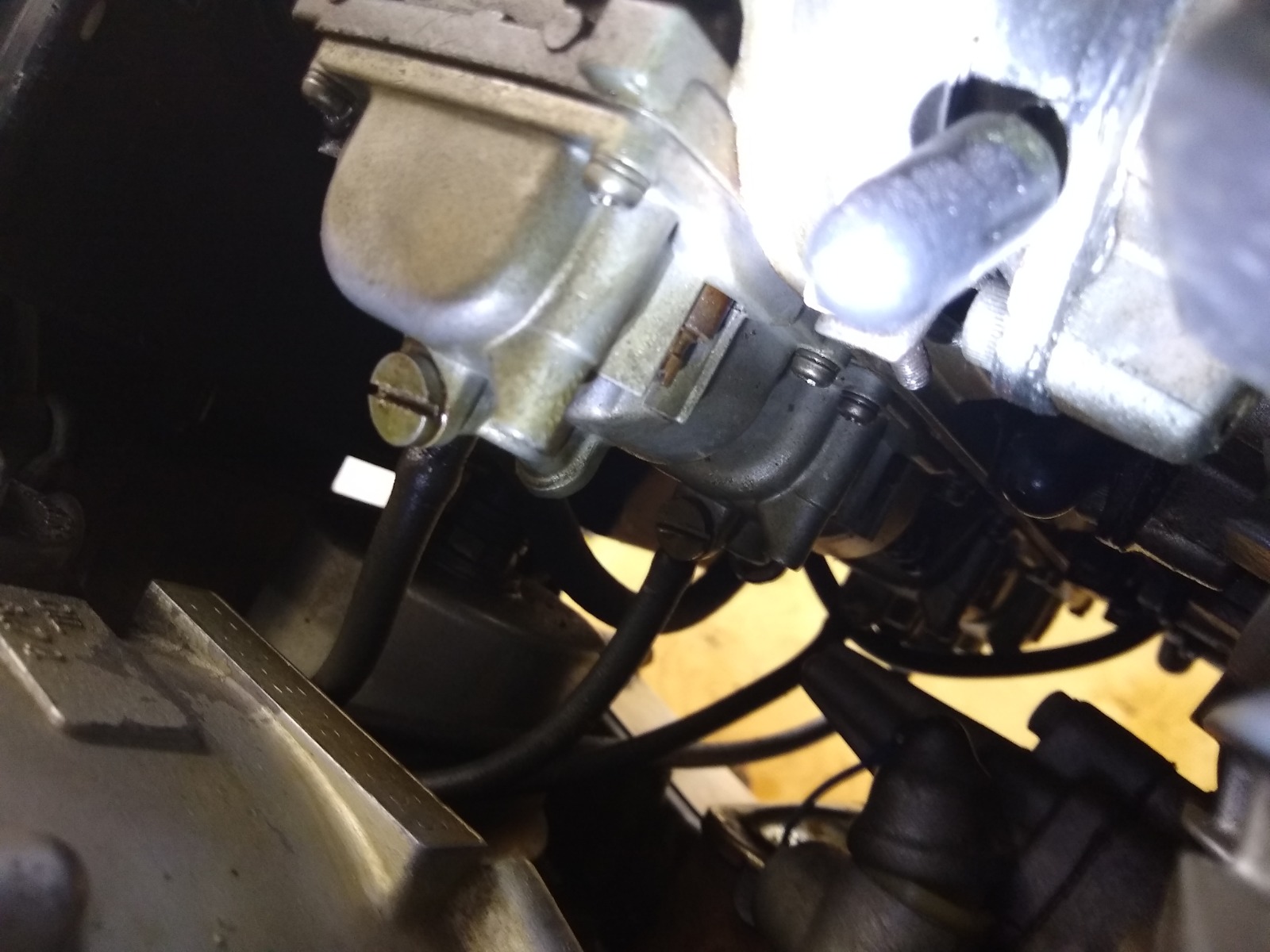 Steve here are the best pictures I can get on carburetors side,top & bottom view. Kinda hard on a old man , but I'm trying. I could only find one of the old plugs. The screws on bottom of carburetors didn't seem to be all alike not with my eye sight anyway. As we were talking earlier my mechanic that has retired unfournatley was talking about lower neddle one or two notches. Untill you told me about the screws on bottom of carburetors. I will try and include best pictures.