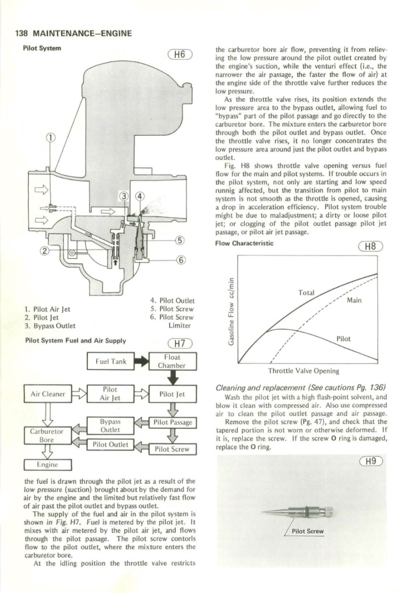 25 Sep 2020 16:12gd4now wrote: Everything others have mentioned I agree with, but think there is an important thing to add. To my way of thinking when one talks about rich or lean, it is in relation to the air to fuel ratio. A pilot screw, unlike an air screw, does not have a direct effect on the air to fuel ratio in the pilot circuit. The air to fuel ratio is controlled by the size of the pilot jet and the pilot air jet. By turning the pilot screw out you are not changing the air to fuel ratio, rather you are increasing the amount, of what ever the air to fuel ratio is, to enter the carb throat on the engine side of the slide. Likewise turning the screw in will not change the air to fuel ratio, but will decrease the amount of the mix to enter the carb throat.