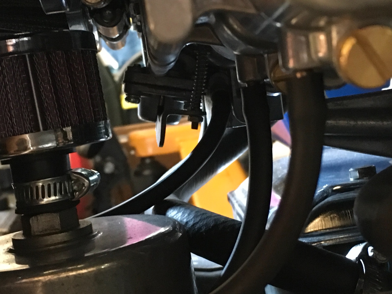 Just solved it, those with the single fuel feed have offset arm to allow clearance, and those with twin feed have a straight arm, just been looking at different sets, as for the thumb screw when i bought my pumpers and that part was missing i made one from brass and managed to get a NOS spring for it.