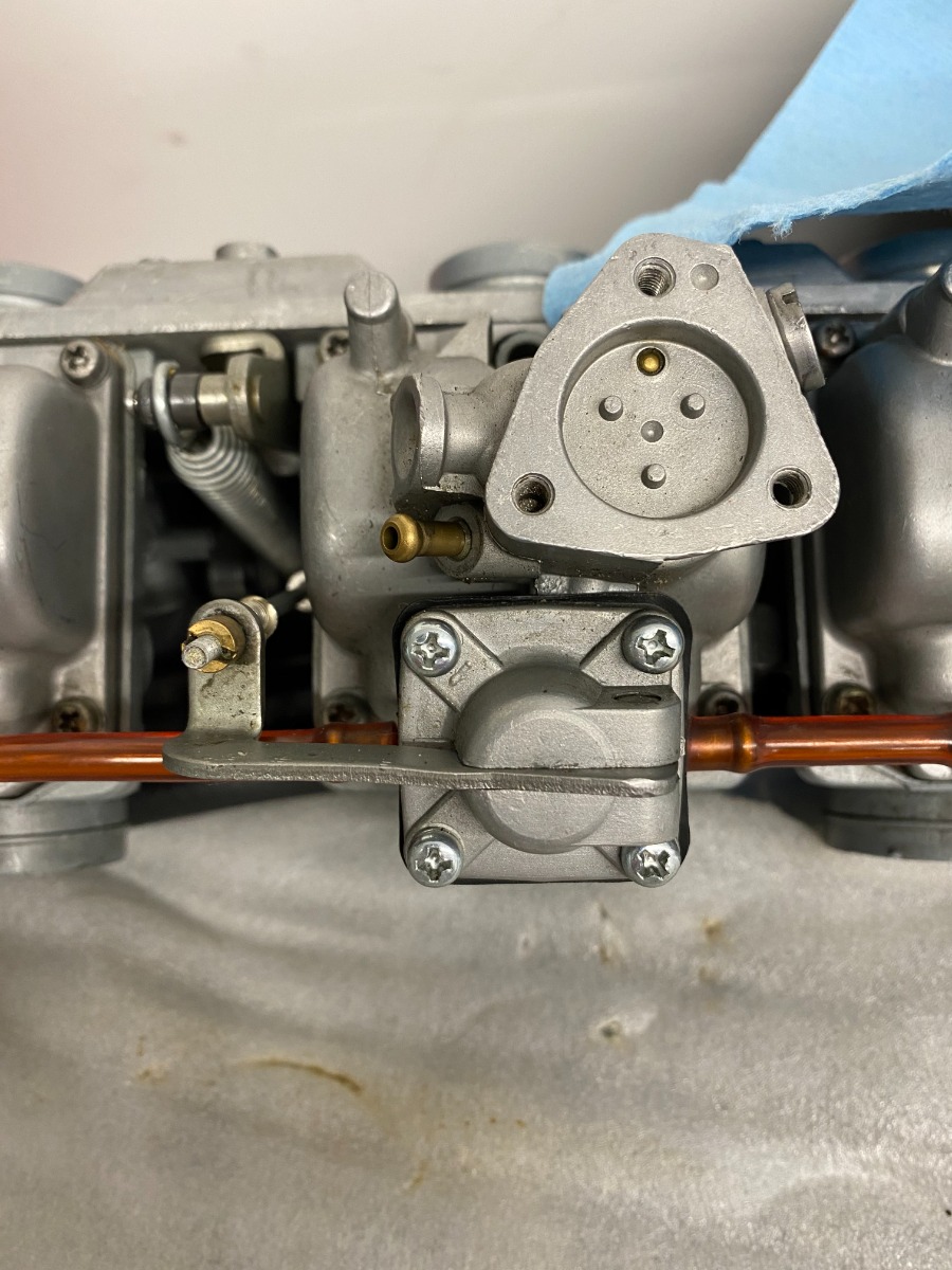 Latest challenge with these carbs, missing the knob on throttle stop screw. Think the knob from most any VM set would work. The search is ON!