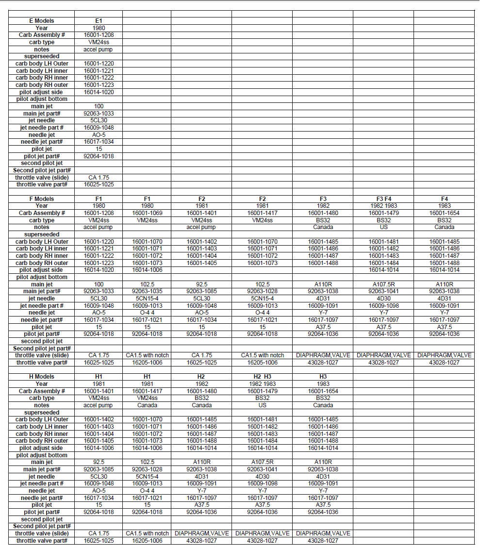 Hi all- I'm trying to buy a carb rebuild kit for the KZ650 I am starting work on, and I'm confusing myself reading through information here and in other places. Are there different carbs for different submodels of the KZ650?